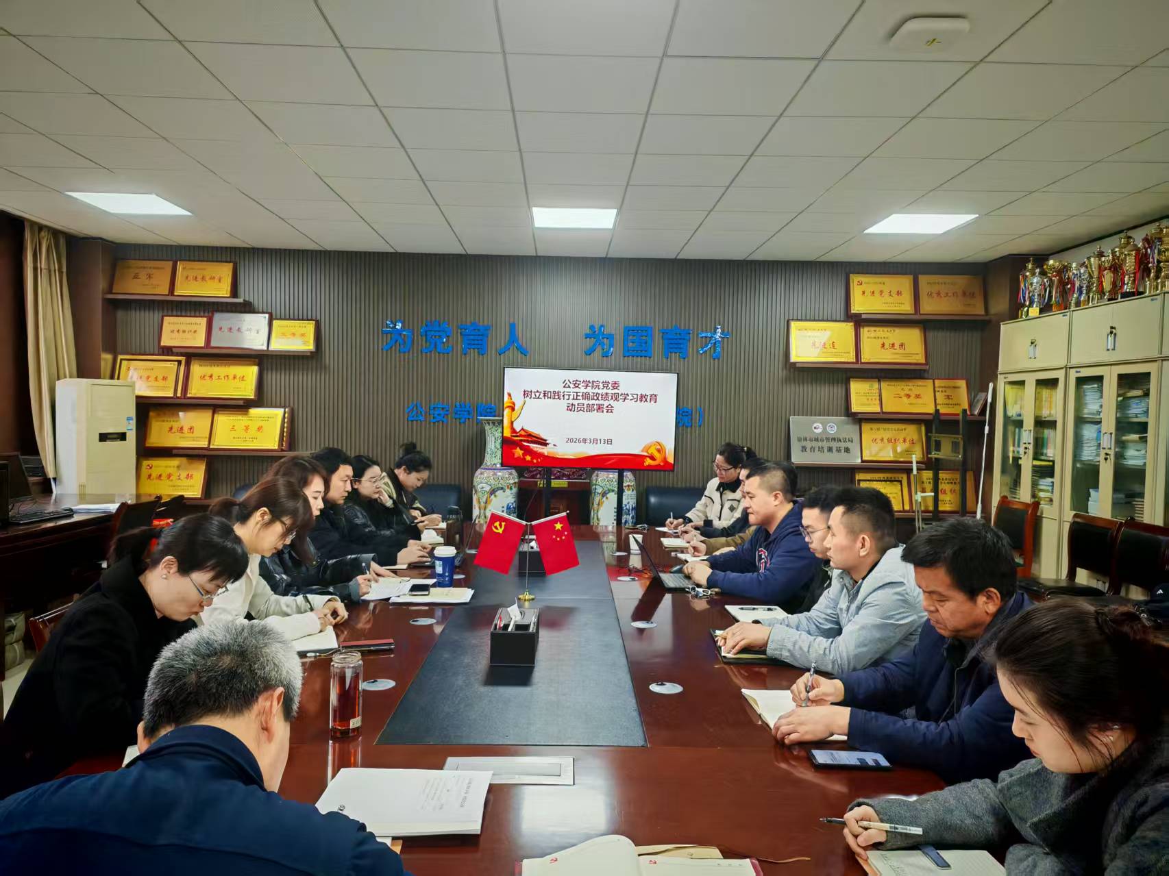 3月13日下午,日本av 党委召开树立和践行正确政绩观学习教育动员部署会。会上集体学习习近平总书记关于树立和践行正确政绩观的重要论述,传达校党委(扩大)会议关于树立和践行正确政绩观学习教育的部署要求。学院班子成员、各师生党支部书记、科级干部参加会议。会议由学院党委书记上官亚敏主持。