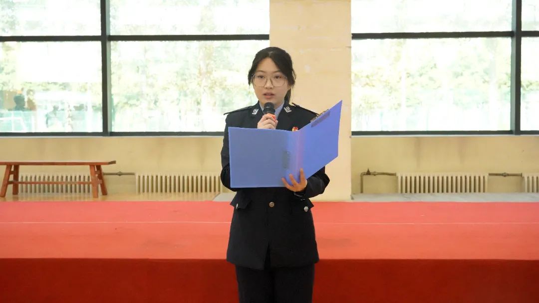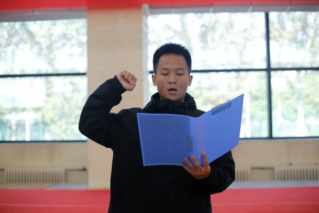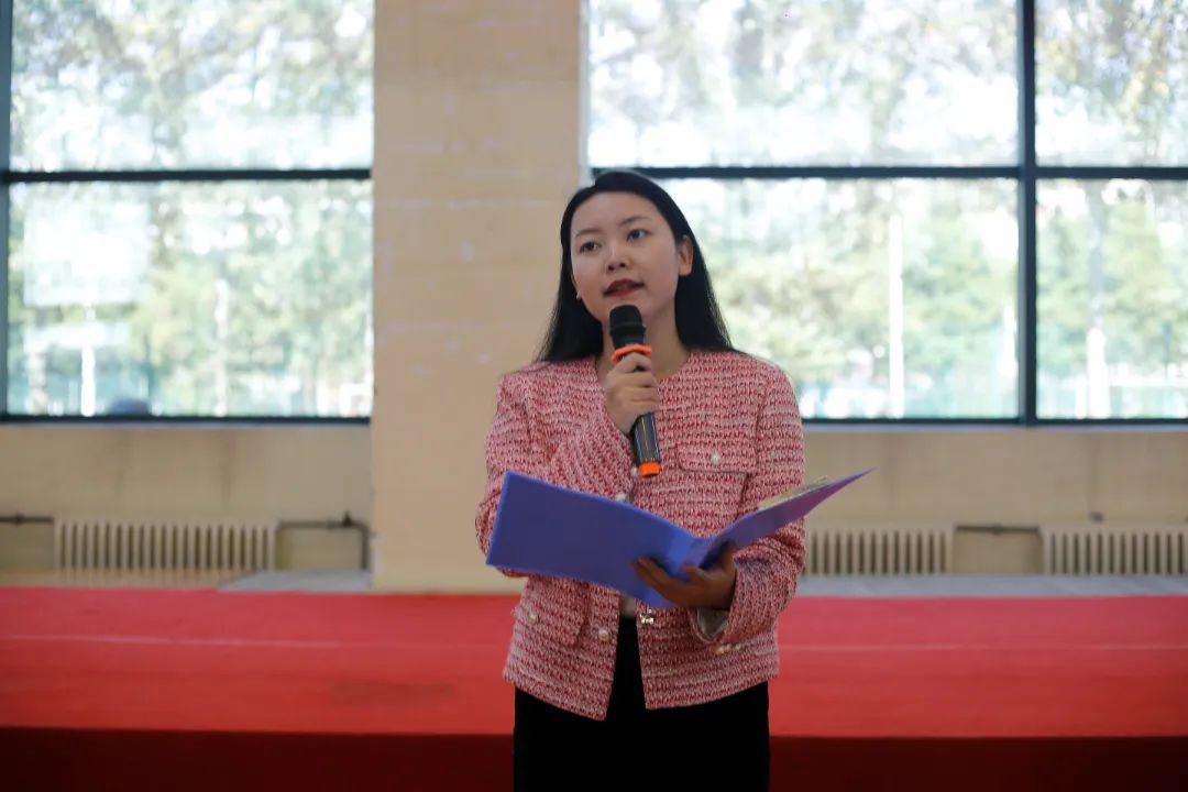 ▲学生会文体部部长魏卓玥宣读篮球赛的赛程与赛制