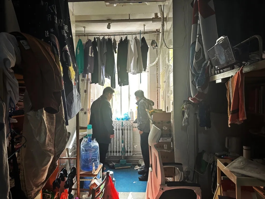 老师们通过走访检查各宿舍实际供暖状况,测试暖气片供暖温度,同时检查各宿舍有无违规使用大功率电器进行取暖情况,并向同学们强调宿舍安全的重要性。各级辅导员老师与学生亲切交谈,关切询问学生在学校遇到的困难,叮嘱同学们在注意保暖的同时每天进行日常通风,保持卫生、安全、健康的宿舍环境。
