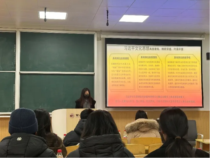 孟晨拓同志带领支部成员梳理习近平文化思想的形成脉络,并从文化力量、文化自信、文化自觉、文化担当四个方面阐述其重大意义,呼吁支部成员深入学习贯彻习近平文化思想,牢记“国之大者”、提高政治站位、坚定文化自信、强化责任担当,以一往无前的奋斗姿态更好担负起新的文化使命,为建成社会主义文化强国作出自身贡献。