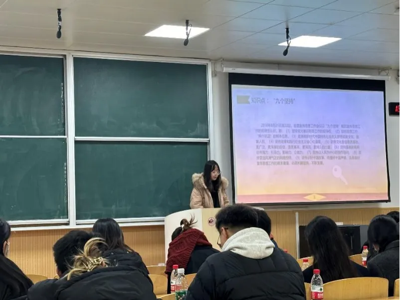 冯佩瑶同志领学习近平总书记对宣传思想文化工作的重要指示和全国宣传思想文化工作会议精神,带领支部成员学习领会“九个坚持”、“十四个强调”以及“七个着力点”的具体内容以及宣传思想文化工作的首要政治任务和新的文化使命,同时从内部环境、国际局势、技术发展与自身发展四个方面详细讲述了宣传思想文化战线的形势和任务。
