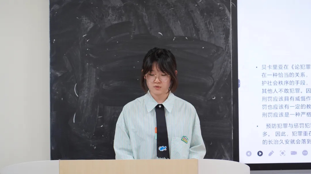 2023级孙一茜则认为,贝卡里亚强调刑罚应与犯罪性质和严重程度相匹配,主张法律条文明确、依法办事、罪刑均衡。实践中,需依据法律准确判断犯罪,通过公正司法确定适当刑罚,重视证据和庭审公开,避免刑讯逼供和过度羁押。刑罚旨在预防犯罪、维护社会利益,其严厉性应适度,以防犯罪不受惩罚和社会不稳定。