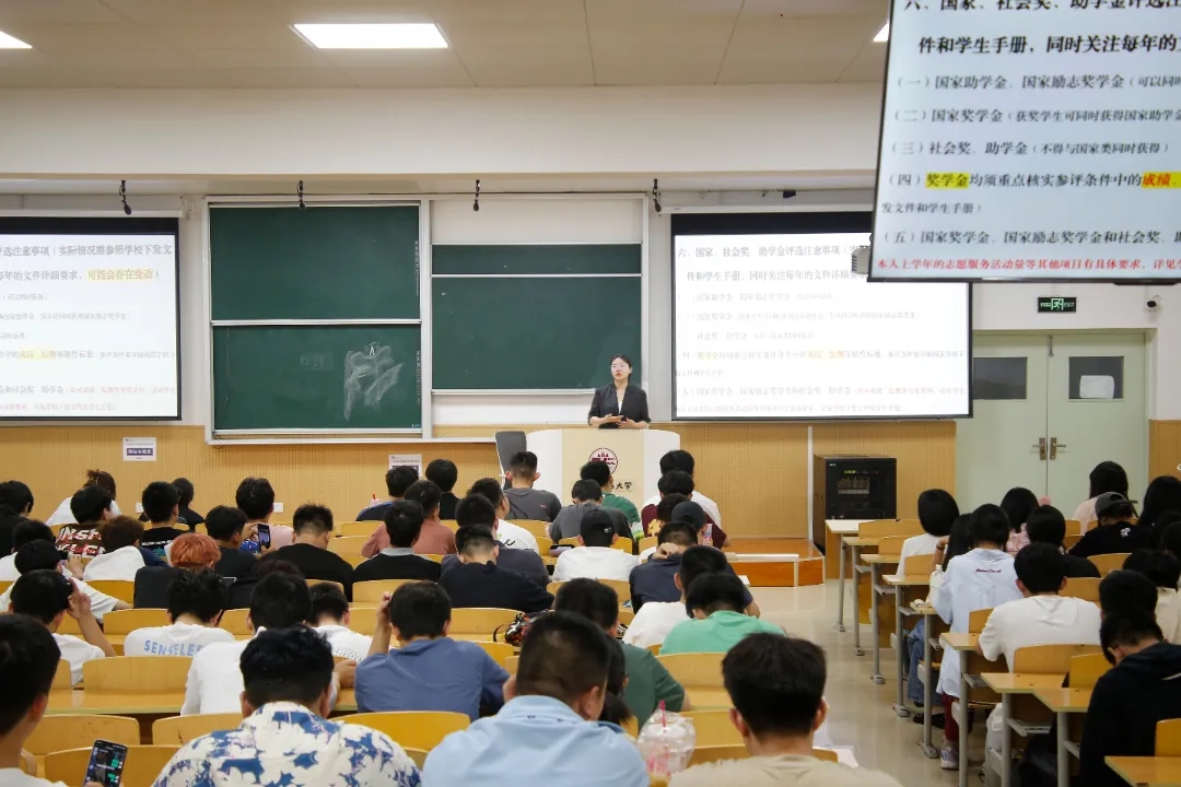 会上,李元昊向同学们详细介绍了家庭经济困难认定、国家奖学金、国家励志奖学金、国家助学金、社会奖学金五项资助政策。他阐述了每项资助政策的适用条件和申请标准,特别强调申请表填写过程中的重要细节,从而帮助同学们全面深入地理解资助体系,确保每位有需要的学生都能得到相应的帮助。