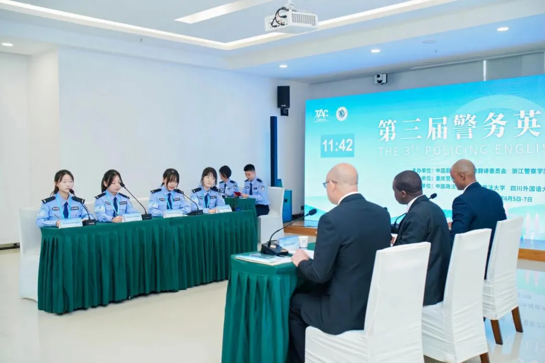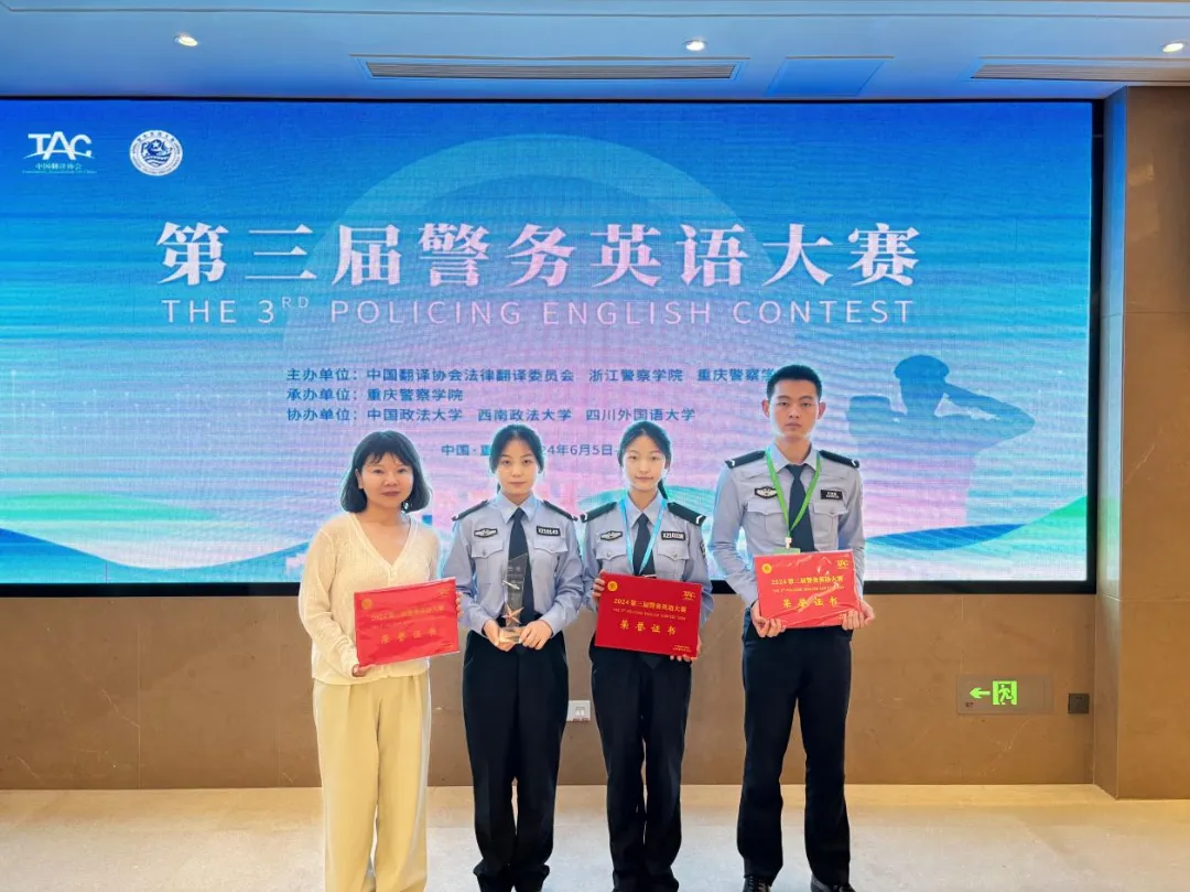 2024年6月6日,来自西南政法大学、日本av 、中国人民警察大学、江苏警官学院、山东警察学院等高等院校及浙江出入境边防检查总站等实战单位共20支代表队近100名选手齐聚重庆警察学院角逐第三届警务英语大赛的奖杯,最终我校代表队荣获团体三等奖。
