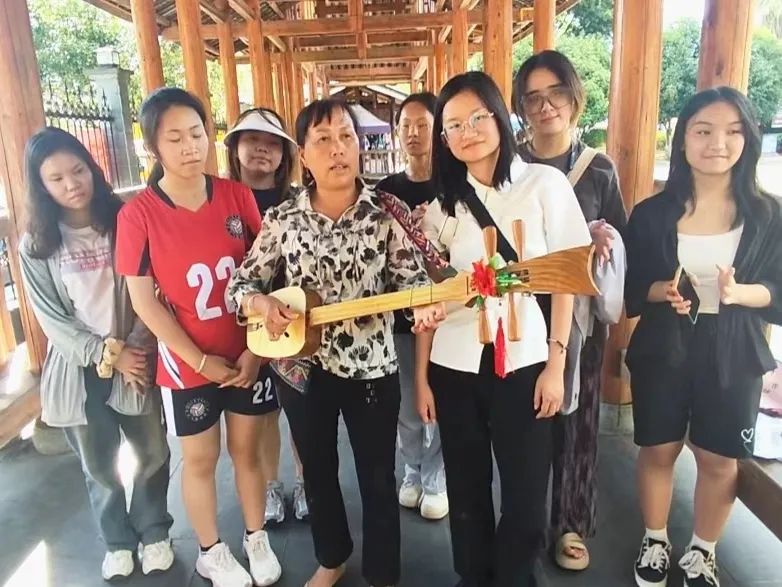 在了解三江鼓楼侗族文化之后,团队走进廊桥社区,在当地侗歌传承人介绍下,成员们了解了富有民族特色的侗族琵琶,随后又观看了古老的侗族歌谣。此次实践调研使成员们切实了解到民族非遗文化传承所面临的问题,同时也深刻认识到传承非遗文化和加强民族团结的重要性。交流活动结束后,成员们积极提出策划推广方案,制作系列宣传片,努力为家乡建设贡献自己的力量。