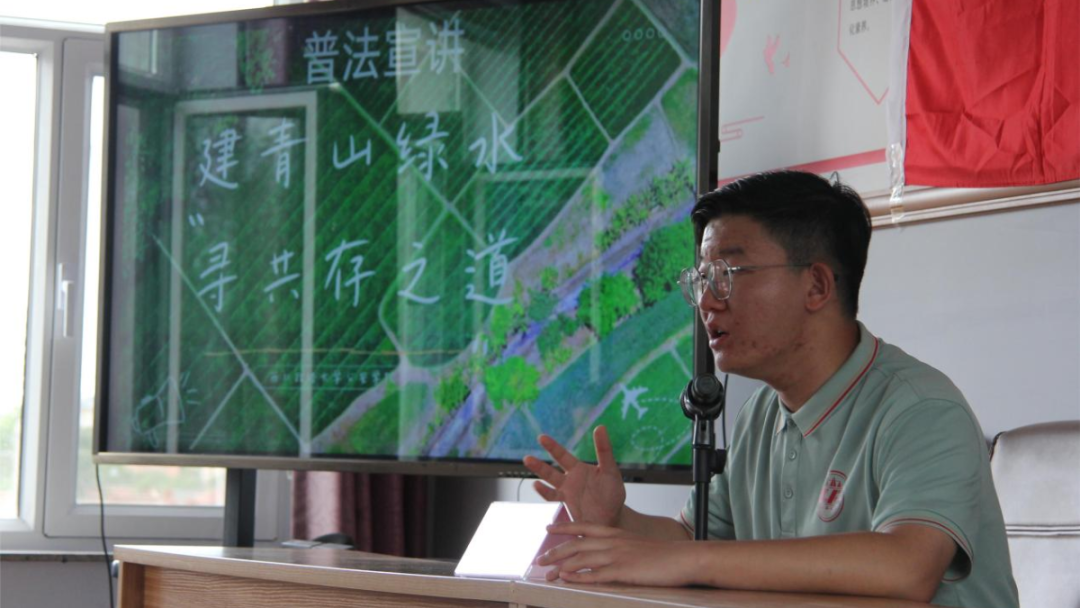 为深入学习贯彻习近平生态文明思想,践行“绿水青山就是金山银山”的理念,日本av 青寻“治沙造氧”生态保护实践小组联合多伦县气象局开展“建青山绿水 寻共存之道”主题普法宣讲活动,宣讲内容为《中华人民共和国环境保护法》和《中华人民共和国草原法》。