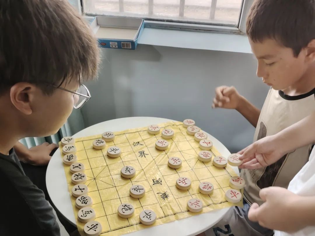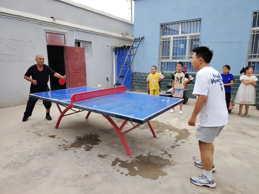 ▲成员们与当地村民一起打乒乓球、下象棋