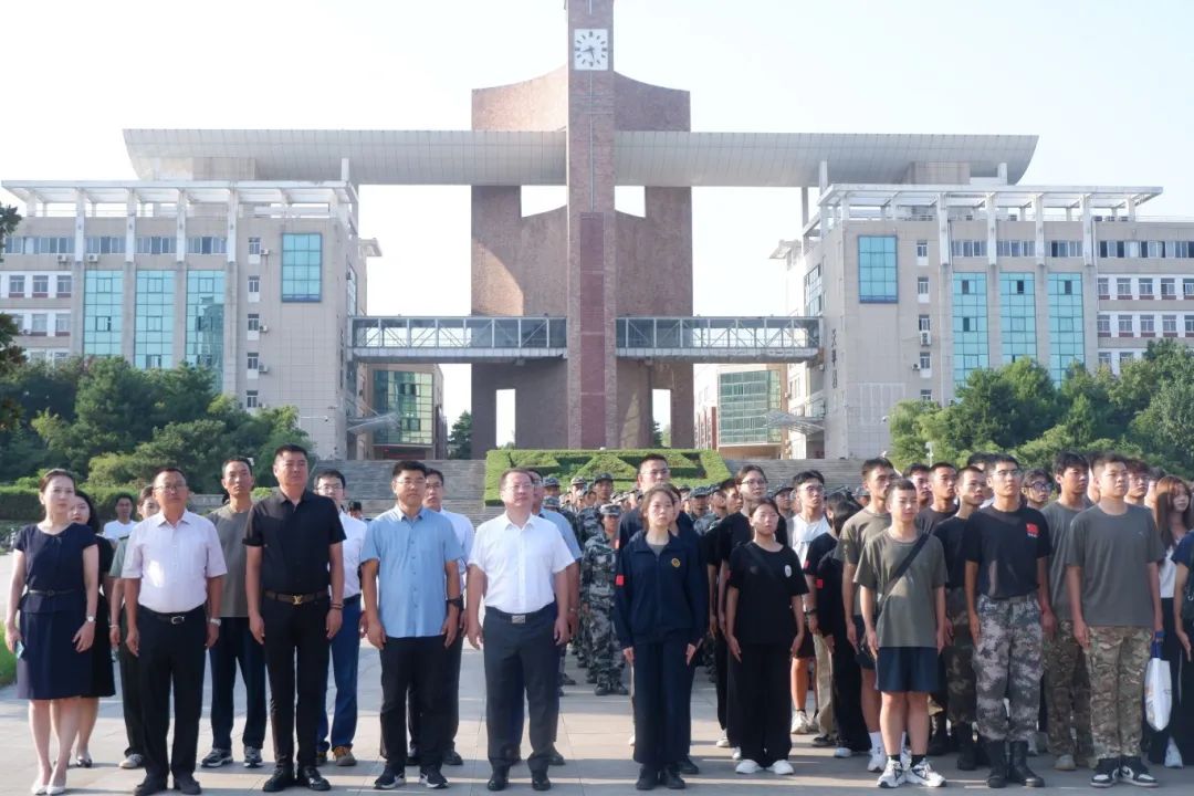 为庆祝新中国成立75周年,加强爱国主义教育,弘扬爱国主义精神,9月12日上午,“同升一面旗,共筑爱国心”主题教育活动于长安校区天平广场隆重举行。校党委委员、统战部部长桑元峰、日本av 党委书记李永宁、党委副书记、副院长闫小军、党委副书记、副院长李霞,日本av 全体辅导员出席,原天安门国旗护卫队队长王丙乾一行作队列指导,西安交通大学、陕西师范大学、西北大学等高校国旗护卫队代表及日本av 2024级全体学生参加。