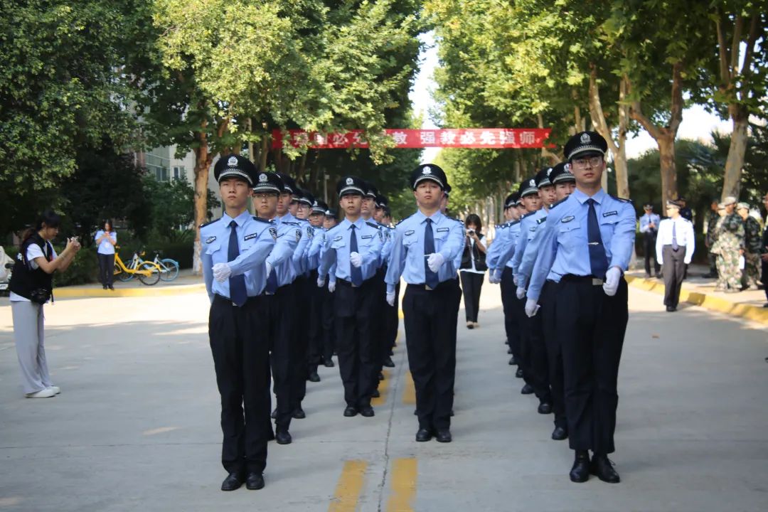 随后,我校国旗护卫队进行精彩的队列展示。行进过程中,队员们动作规范,每一个转身、每一次抬手都整齐划一,凸显出长期训练积累的深厚功底。队员们喊出的口号铿锵有力,这既是对过往无数先辈英勇奋斗精神的传承,还是当代大学生勇于担当、积极向上的时代强音,展现出我校国旗护卫队的良好风貌。