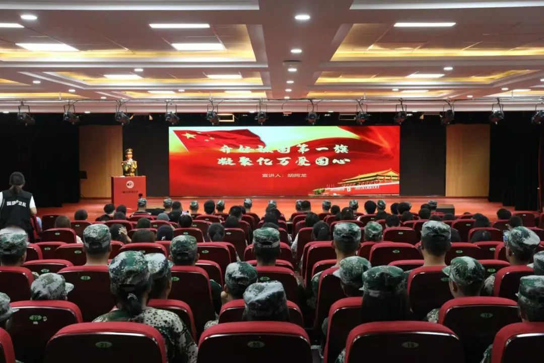 胡阿龙以《升好祖国第一旗 凝聚亿万爱国心》为题,为师生们带来了一场精彩纷呈的讲座。他从国旗的象征意义、诞生背景以及五星红旗的含义等方面,向大家详细介绍了国旗的基本知识和升旗仪式的规范要求。同时,他结合自己在天安门国旗护卫队服役的亲身经历,生动地讲述了那段充满挑战与荣耀的训练生活。他还分享了王俊华和陶维革两位国旗手的感人事迹,以此激励同学们自觉捍卫国旗尊严,增强爱国意识,砥砺强国之志。最后,他鼓励大家积极弘扬爱国主义精神,并自觉遵守《国旗法》,以实际行动表达对祖国的热爱。