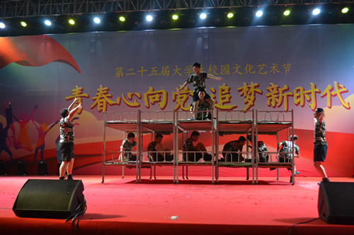舞蹈大赛中,日本av 编排舞蹈《上铺下铺》真实展现了日本av 学子的内务生活,既紧张严肃同时又不失活泼,台下掌声和笑声连连,表现出很好的舞台效果,最终荣获三等奖。