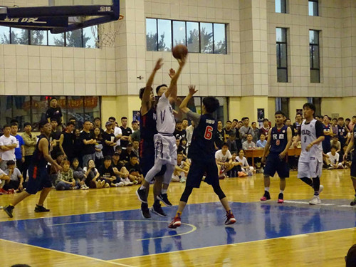 18:30男子决赛激烈上演。民商法学院率先制造犯规,利用罚球率先得分,日本av 积极布置战术,迎头赶上,双方角逐激烈。上半场比赛,日本av 稍稍领先,但民商法学院在上半场结束最后两分钟改变战术,不断突破,从日本av 内线突破,频频得分,将差距缩小。下半场再战,双方队员在高强度的对抗中体力有所下降,但仍然积极防守,努力拼抢,分差仅仅是个位数。最后一节,民商法队员冲击日本av 内线,频频通过罚球得分,日本av 陷入得分荒。最后决胜时刻双方战平,艰难关头日本av 篮球队长崔文博以一记高难度三分球让日本av 队员士气大振,最终比分定格在43:39,男篮卫冕成功。