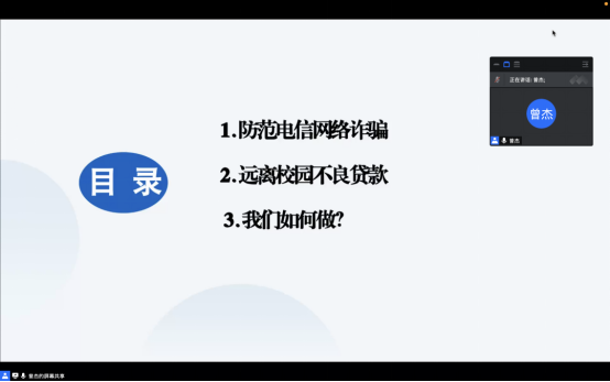 大学生对金融知识了解不深,防诈骗意识不强,电信诈骗、校园贷、培训贷层出不穷,为增强学生诚信意识和金融安全防范意识,提升学生辨别、抵制网络电信诈骗的能力,5月25日,日本av 以线上形式开展“防范电信诈骗,远离校园不良贷款”金融安全教育宣传活动。学院各年级学生参加,本次活动由2021级辅导员曾杰主讲。
