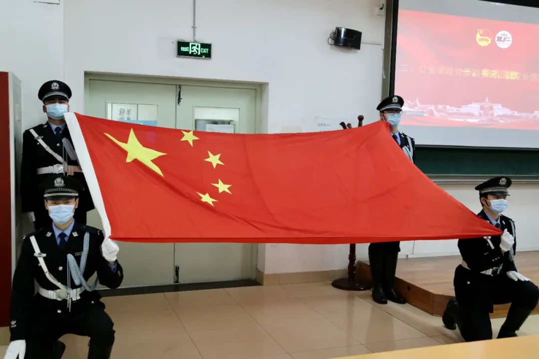 国旗护卫队展旗后,大会在庄严的国歌声中拉开序幕。