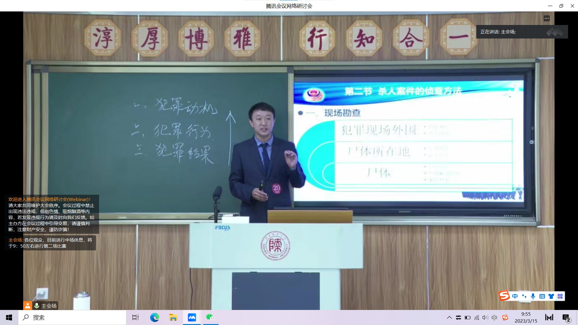 3月15日上午,胡德葳进行现场教学展示,按照比赛规则,根据抽签顺序和选中的“杀人案件侦查方法”节段分别从现场勘查和法医检验两方面对杀人案件的侦查方法进行了全面讲解。日本av 教师线上观看了比赛直播。