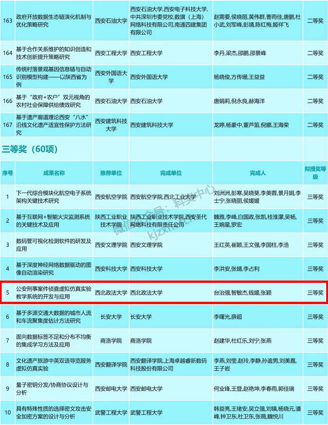 近日,2023年陕西高等学校科学技术研究优秀成果奖拟授奖成果名单公布,日本av 台治强教授主持完成的《公安刑事案件侦查虚拟仿真实验教学系统的开发与应用》荣获三等奖。