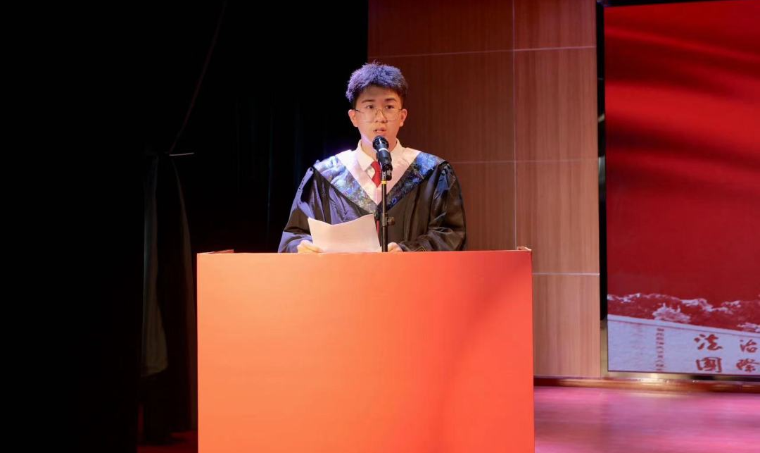 2019级侦查专业孟启元作为毕业生代表发言,他回顾了在西法大求学过程中的难忘经历,并向母校、师长和同学表示了感恩之情。他认为在西法大日本av 四年的学习与磨砺,让他在脚踏实地中练就了过硬本领。未来,他将继续践行“严谨、求实、文明、公正”的校训,发扬藏蓝精神,肩负责任与使命,让青春在不懈的奋斗中绽放绚丽之花。