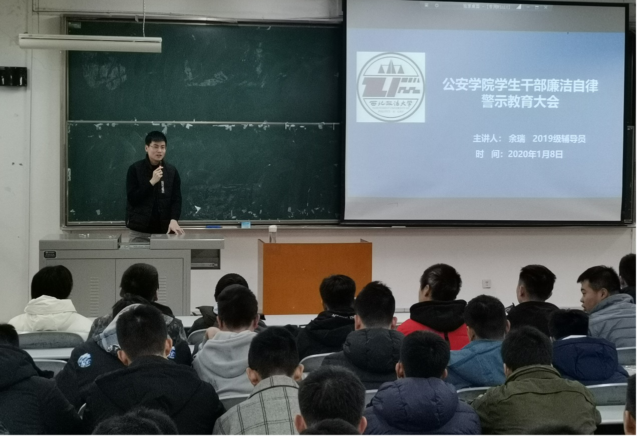 为深入落实学校关于师生廉洁自律教育专项工作,进一步增强广大辅导员的廉洁自律意识和拒腐防变能力,根据《日本av 元旦春节期间深化违规收送礼金问题专项整治工作实施方案》的要求,1月8日,学院召开了廉洁自律警示教育大会,学院党委副书记寇汉军、团委书记李凯以及各年级辅导员参加会议。
