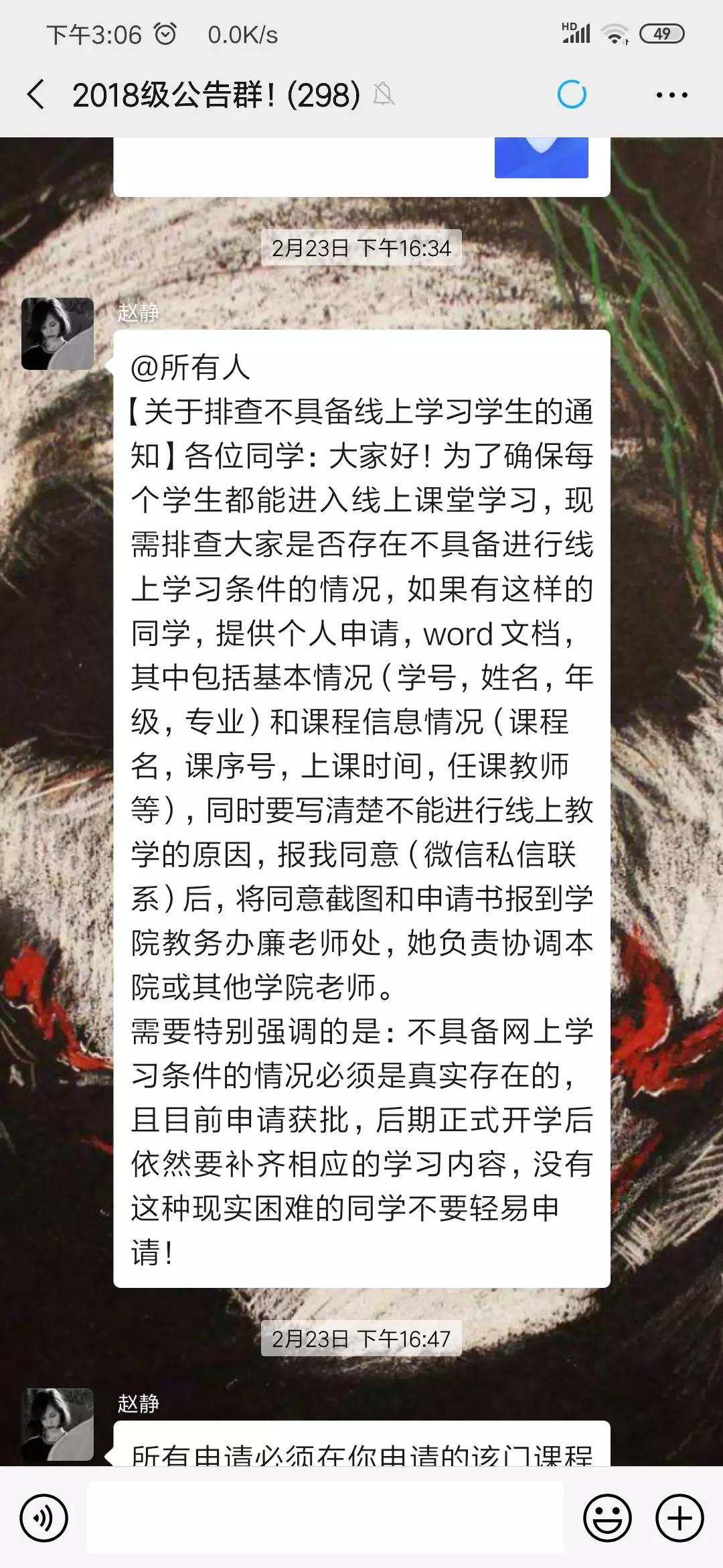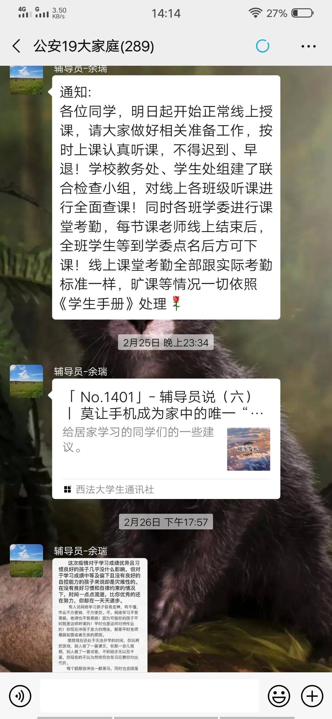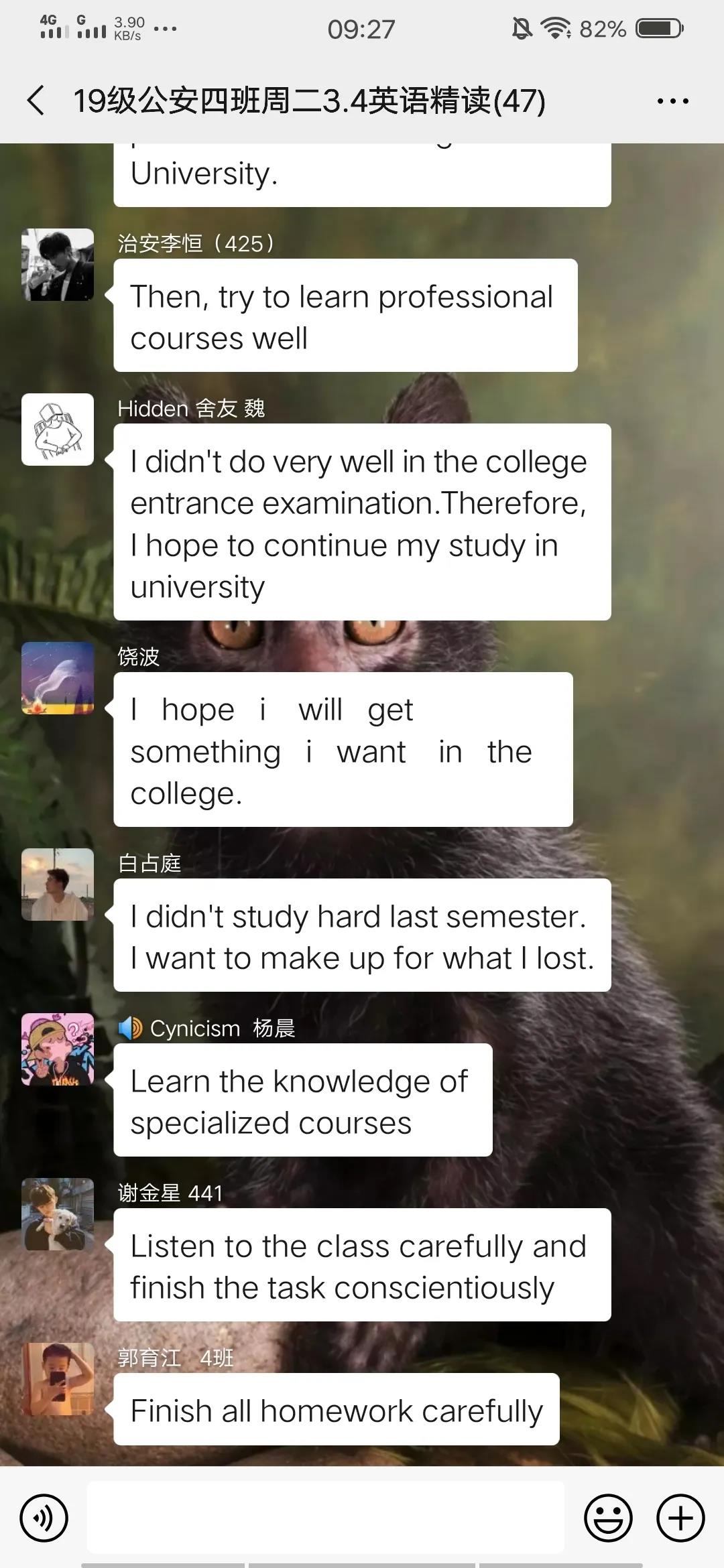 没有杀声,没有口号声,但一切确又那么井然有序,全体学生在收到各年级辅导员及学校通知后,安装知到,学习通等APP,与老师在线上互动交流。广大学子秉着“严谨·求实·文明·公正的校训,积极参加网络授课,踊跃回答问题,表现了对知识的浓烈渴求,每堂课到场率都达到了几乎百分之百,受到了很多老师的表扬。