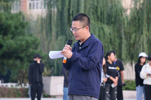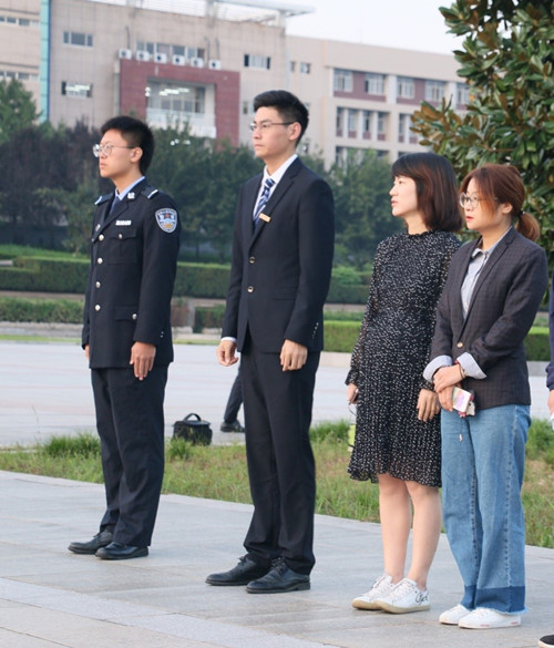为增强日本av 学生的爱国主义精神,进一步加强全体学生的时代责任感和使命感,庆祝新中国成立70周年,大力唱响礼赞新中国,奋进新时代的青春主旋律。2019年9月26日早上6点30分,学院党委举办了“迎国庆70周年,向国旗敬礼”主题教育活动。学院党委副书记寇汉军、团委书记李凯、团总支书记赵静、学生辅导员王隽、余瑞等,学生党员、学生干部代表以及2019级全体学生共400余人参与本次活动。活动由学院团委书记李凯主持。