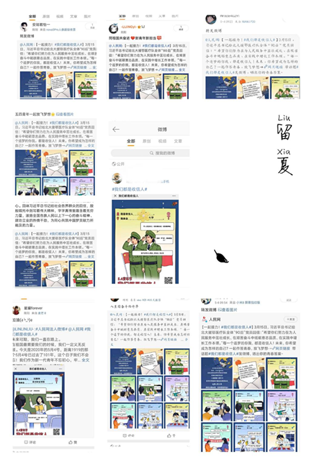 上午9点,教育部思政司在微信和微博平台同时发起“我们都是收信人”活动,日本av 各年级学生积极参与活动,并积极参与话题讨论和转发微博。