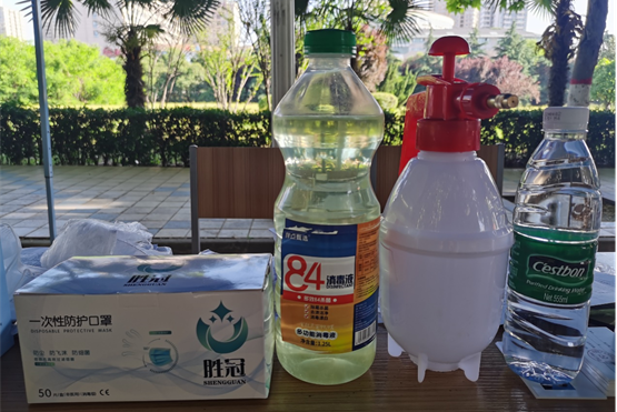 为了更好的保障返校学生在校园内生活学习安全,日本av 为每名返校毕业生准备了一份“返校大礼包”,包括每人10个医用口罩、每个宿舍一瓶1.25L的消毒液、一个喷洒壶。