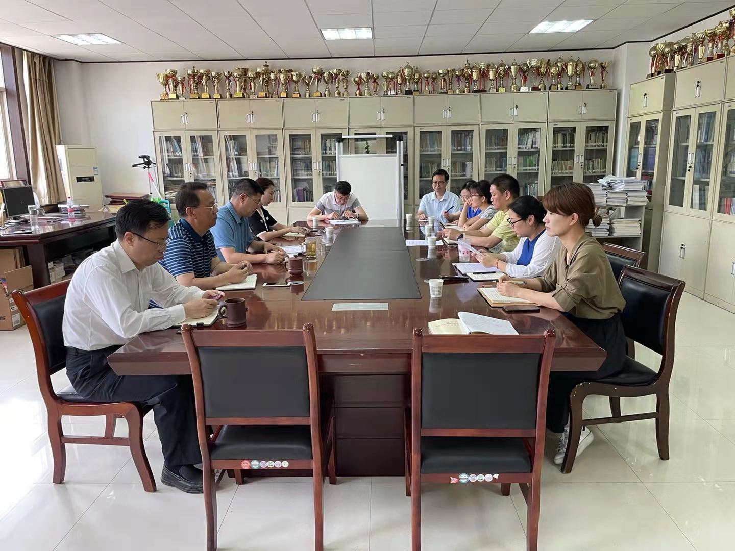 在资料室召开了2021届毕业生就业工作推进会,参加本次会议的有全体学院领导、各党支部书记、2017级和2018级辅导员。