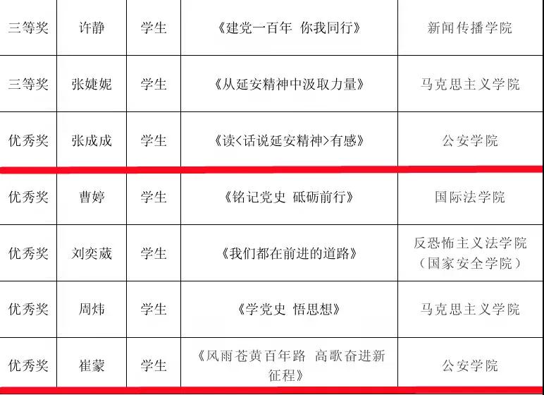 五名师生征文获奖:余瑞老师的«青春心向党,百年正芳华»荣获二等奖;张瑾老师的«不忘来时路,砥砺向前行»荣获三等奖;牛炉基同学的«记人民文学家柳青先生»荣获优秀奖,张成成同学的《读<话说延安精神>有感》荣获优秀奖,崔蒙同学的《风雨苍黄百年路,高歌奋进新征程》荣获优秀奖。日本av