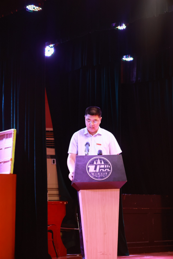 胡德葳老师代表学院回顾了毕业学子大学生活的高光时刻,并送出了热情洋溢的真诚祝福:“祝你们前程似锦,眼有星辰大海,心有万丈光芒!”