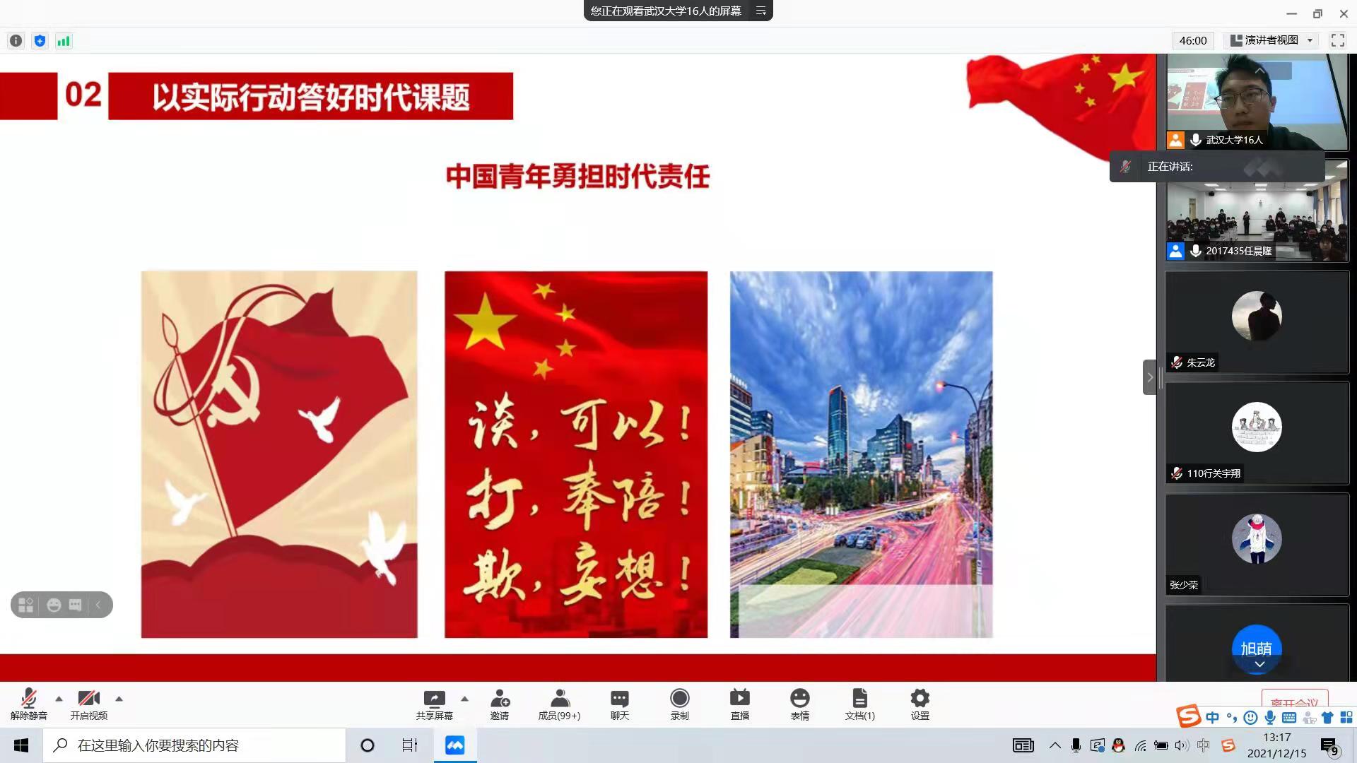 来自武汉大学博士生宣讲团的三位讲师结合自己的专业理论与自身实践,分别为大家进行了十九届六中全会精神的宣讲。