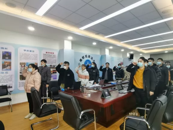第二项,中南财经政法大学刑事司法学院研究生办公室主任兼研究生辅导员彭倩老师带领全体参与人员重温入党誓词。