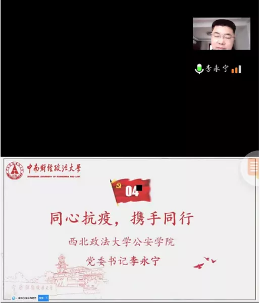 第三项,中南财经政法大学刑事司法学院党委书记张志刚发言。他表示,每一个党组织就是一个坚实的堡垒,每一位党员就是一面生动的旗帜。西安民众团结一致,贡献力量,再次展现了中国人民对抗新冠疫情肺炎的过程中形成的生命至上,举国同心,舍生忘死,尊重科学,命运与共的伟大抗疫精神,其成果的取得展现了中国人民的伟大力量,增强了民族凝聚力和向心力。两年前在武汉疫情暴发时中南财经政法大学受到了西北政大学的热切相助,以前的温暖仍铭记于心,如今中南财经政法大学也为日本av 也献上最真挚的祈愿和祝福,相信西安定能战胜本次疫情,定将迎来冰雪消融,春暖花开!