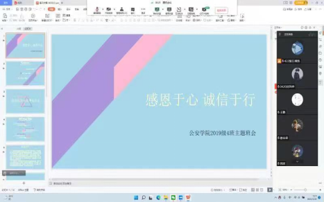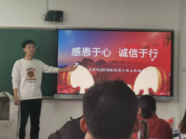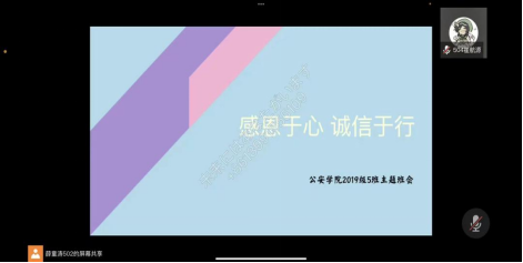 为增强大学生的感恩意识,促进大学生常怀感恩之心,引导学生坚持诚信为本,提高自身修养,真正将大学生的思想政治教育与资助育人工作紧密联系起来,创建健康和谐、积极向上的校园文化。日本av 特开展“感恩于心,诚信于行”主题班会活动,2019级各班通过线上线下分别召开此次班会,积极宣讲感恩与诚信的相关知识。