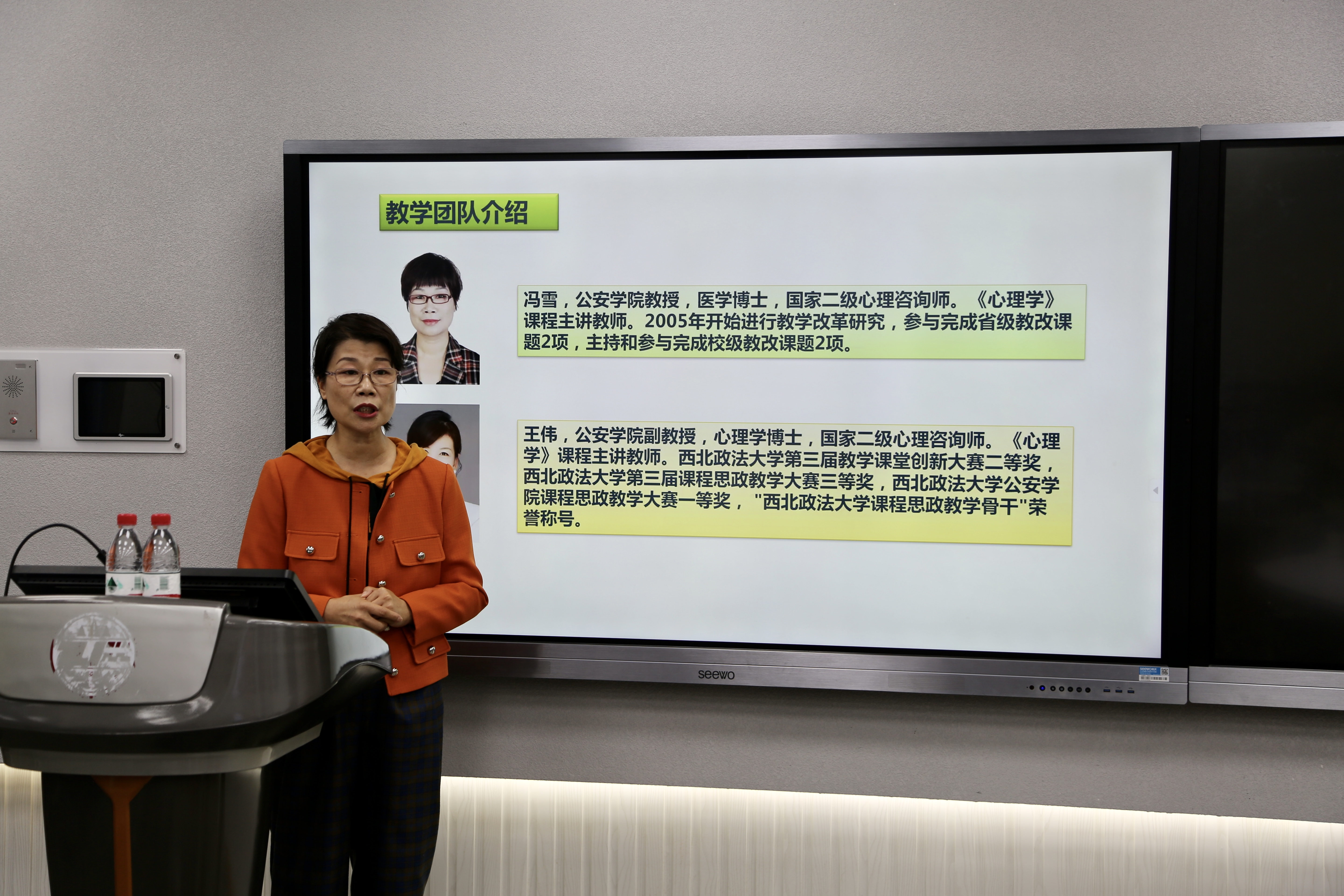 经个人报名、教研室推荐、学院审核,共有六位教师参加此次比赛。比赛中,各位教师充分整合课程教学资源,巧妙融入“学生为中心”的育人理念,娴熟运用智能一体机、精美课件等智慧教学工具,充分展示了高质量的创新教学及课程思政理念。老师们精彩的讲述和认真执着的敬业精神深深打动了现场的评委和观众。经过激烈角逐,冯雪、王伟、胡德葳老师获得一等奖,卫燕茹、赵娜老师获得二等奖,刘言、郭永亮老师获得三等奖。