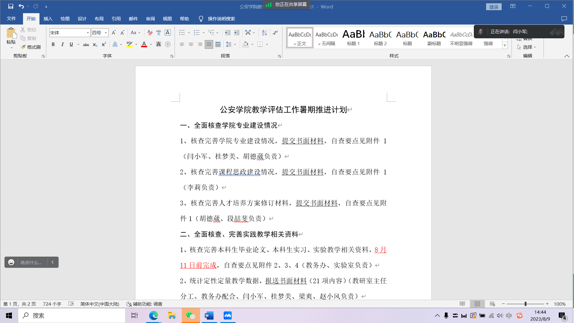 本次会议着重讨论评估工作暑期的推进内容,副院长李莉对照学校材料清单要求,详细解读了新一轮审核评估指标体系的内涵,对暑期工作的具体任务、责任人和完成进度、时间节点进行了部署安排,就相关工作进行了充分的讲解分析。