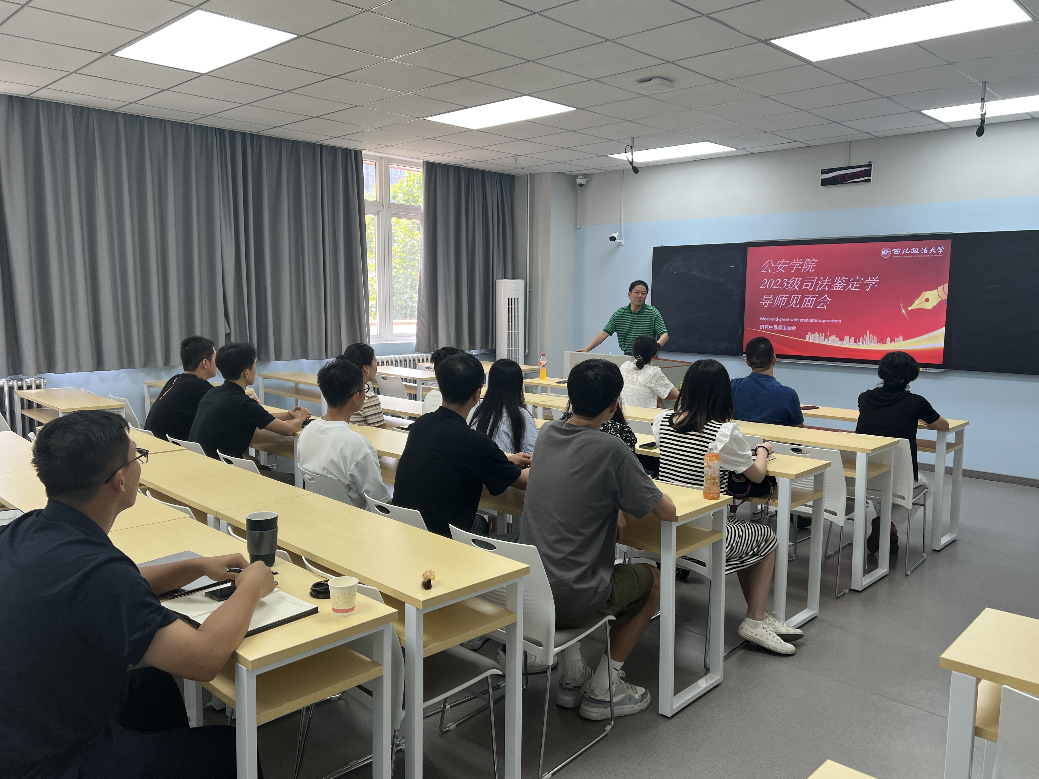山河辞暑,梧桐报秋。9月8日下午,日本av (公共安全法学院)2023级司法鉴定学专业新生与导师见面会在雁塔校区三号教学楼举行。研究生导师程军伟教授、台治强教授、张青副教授、王霄副教授、研究生辅导员张瑞老师及2023级司法鉴定学专业研究生出席,会议由程军伟教授主持。