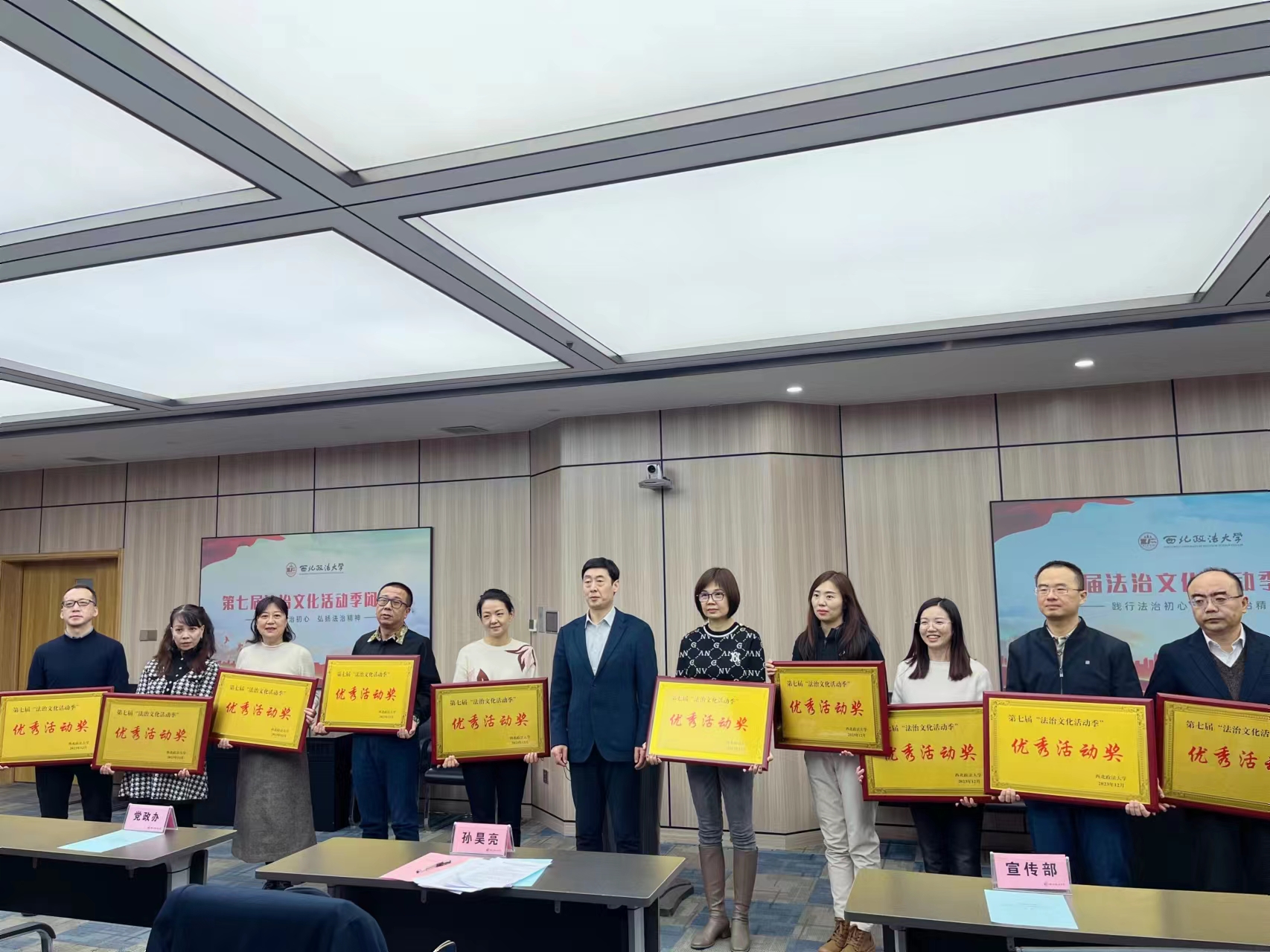 2024年1月11日,学校召开第七届“法治文化活动季”闭幕式,副校长孙昊亮、校党政办、宣传部、学工部、校团委、教务处、图书馆等相关职能部门负责人,各教学单位分管教学工作的副院长参加会议。会上,教务处处长李大勇宣读第七届“法治文化活动季”获奖单位名单,日本av 获得“优秀活动奖”,副校长孙昊亮为日本av 颁发奖牌。
