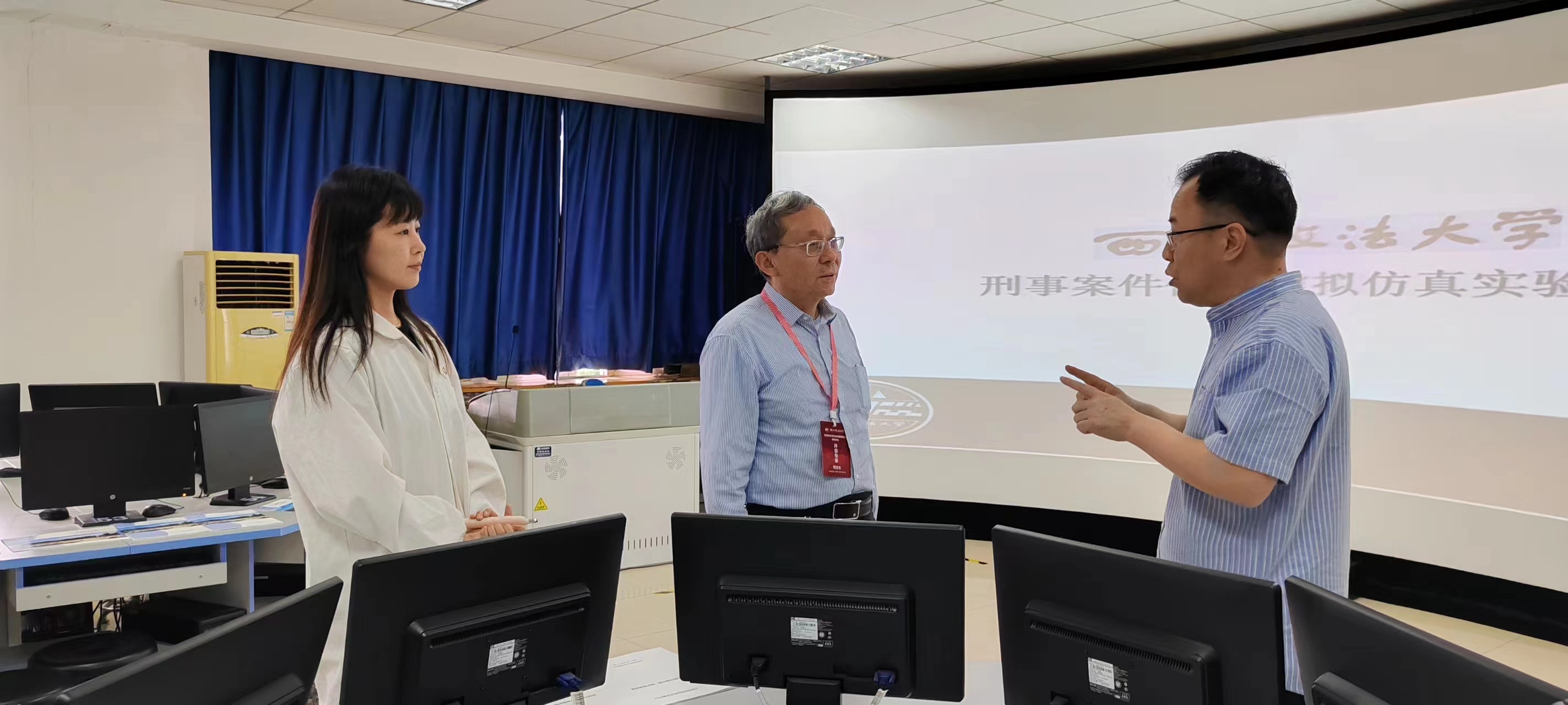 随后,郭宝龙教授对刑事案件虚拟仿真实验中心进行走访,详细了解了刑事案件侦查虚拟仿真实验教学软件,对虚拟仿真实验室采用虚仿形式提升实验效率、节约实验成本给予肯定。