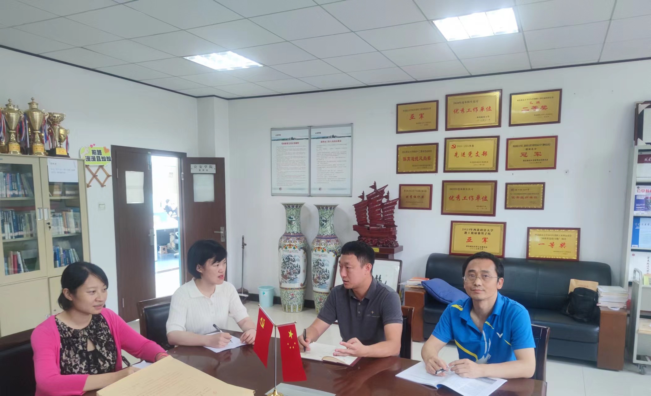 6月14日,治安学教研室全体教师在博士办公室进行集体备课。在备课会上按照时间节点集体学习了学校2023-2024学年下学期期末考试工作安排的通知。教研室主任重申了新的考试安排及要求,强调试卷一定要履行审批手续及闭卷试题和近三年试题的重复率不能超过30%。各位老师发表表示严格按照考试工作安排的要求进行出题。通过集体备课,大家对期末考试的要求尽在掌握。