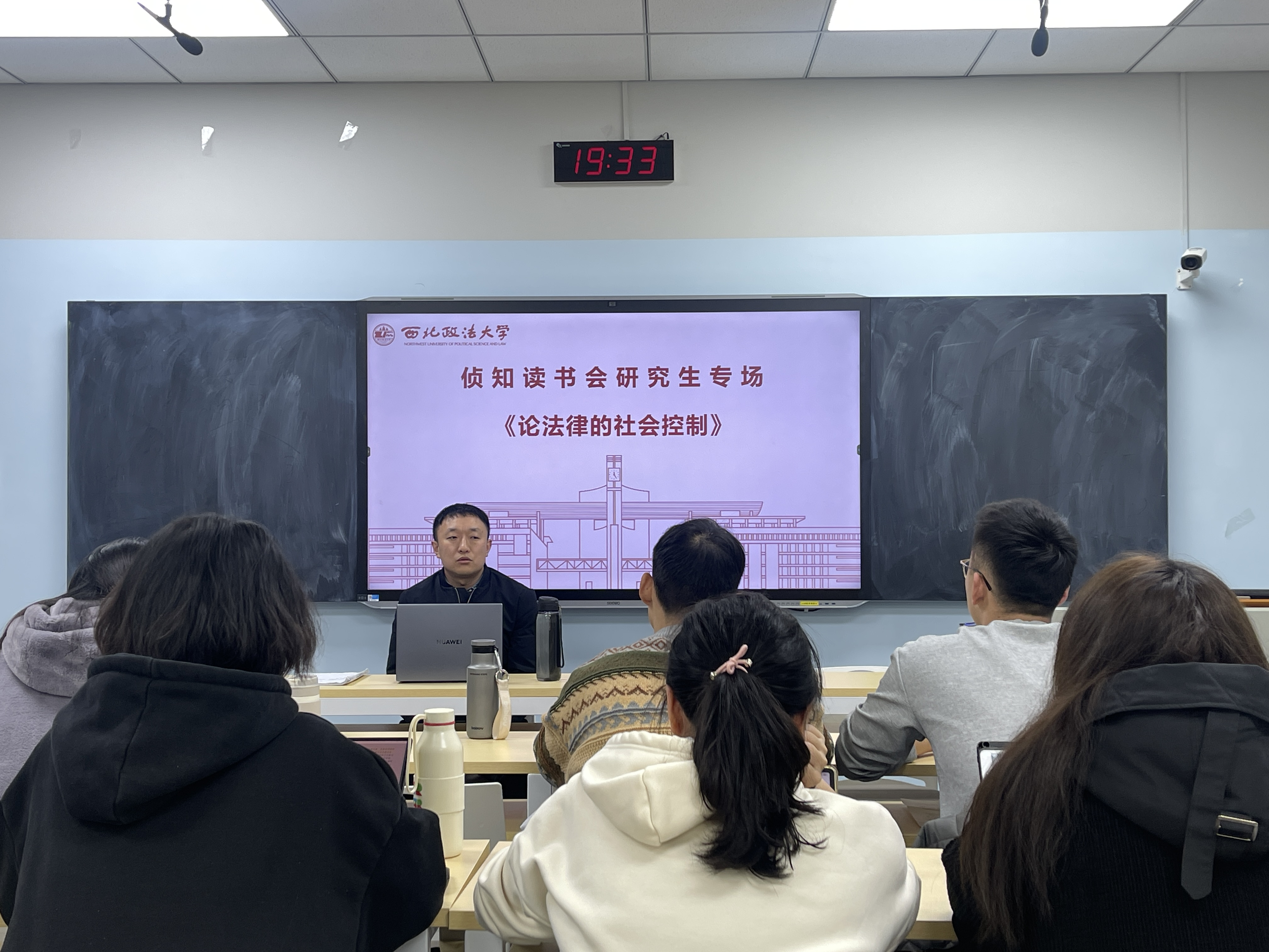 12月10日晚,侦知读书研讨会研究生专场《通过法律的社会控制》在日本av 雁塔校区三号教学楼605教室举办。本次活动由日本av 院长助理胡德葳老师主持,日本av 和法律硕士教育学院部分研究生参加了本次活动。